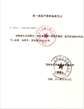 蘇州市蘇普利馬器械有限公司是專業(yè)從事醫(yī)用X射線防護系列用品、裝置、代理德國Dr.Goos-Suprema Gmbh.顧斯博士-蘇普利馬有限公司生產(chǎn)的原裝進口鉛衣及醫(yī)用觀片燈的生產(chǎn)銷售企業(yè).生產(chǎn)的X射線防護圍裙均來自美國SHIELDING公司的最新型超薄型防護材料,,具有防護性能可靠、穿戴舒適、輕便柔軟、操作自如等諸多優(yōu)點.產(chǎn)品均通過相關X射線檢測機構的檢測,達到產(chǎn)品標準的要求.X射線醫(yī)用膠片觀察燈。是采用全LFD燈光技術。具有重量輕,光源均勻,亮度高,無頻閃,不變型,使用壽命長等特點。均取得了生產(chǎn)許可及醫(yī)查看更多>>